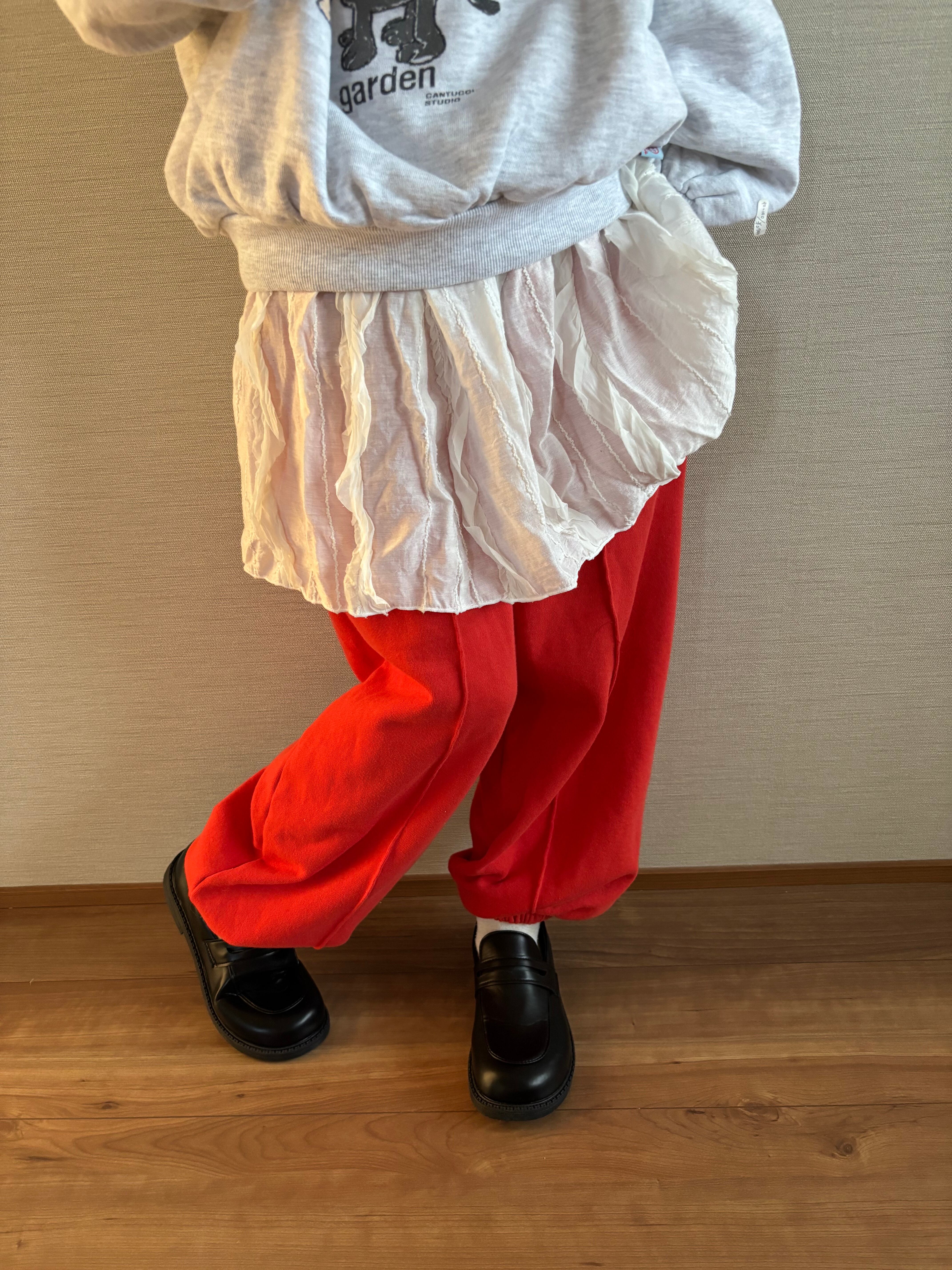 【主役級カラー!毎日履かせたい赤ジョガーパンツ】