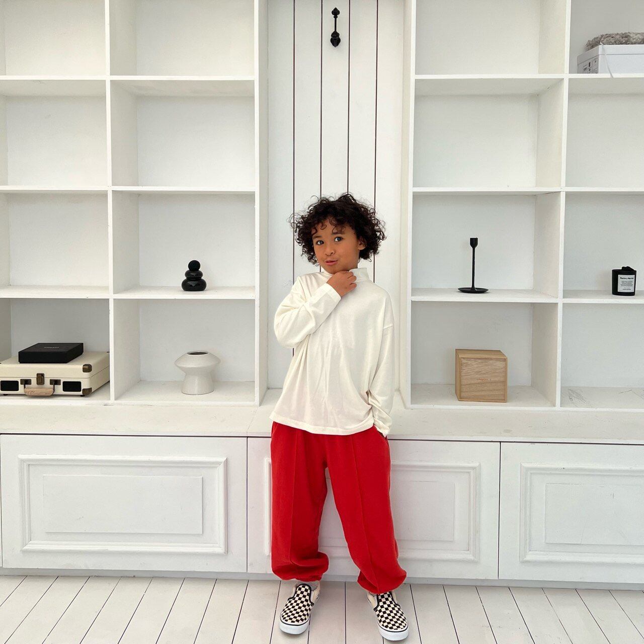 【主役級カラー!毎日履かせたい赤ジョガーパンツ】