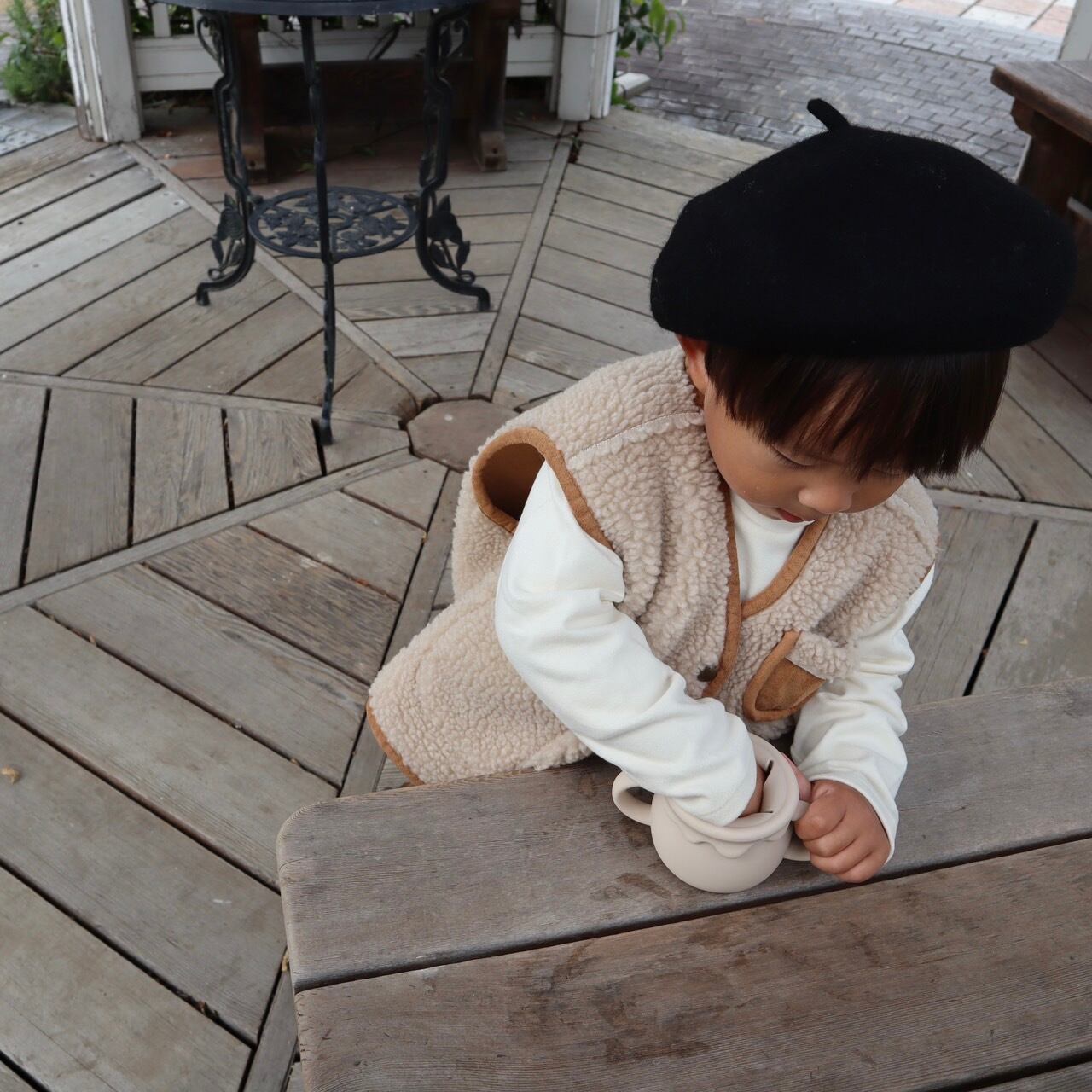 女の子/ ホワイト、キャメル着用